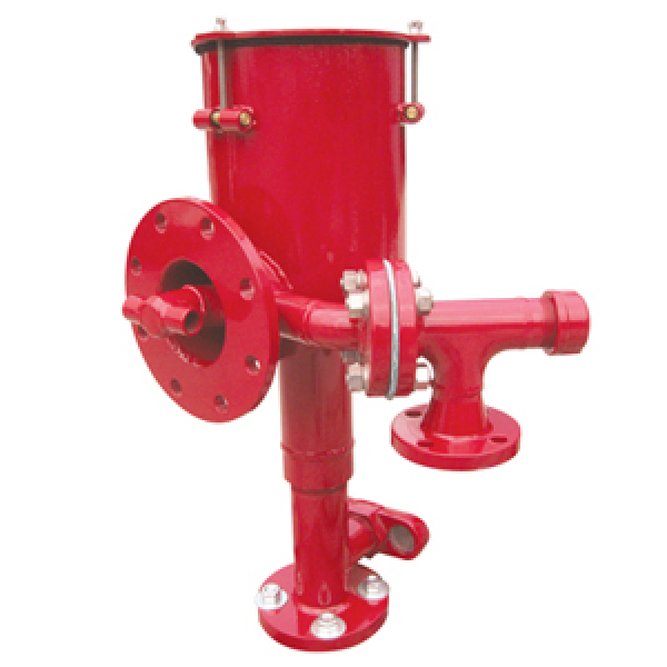 Conventional foam chambers are designed to simply pour foam onto the liquid fuel surface from the circumference of the tank. The foam then runs across the liquid surface using only gravity as its means of propulsion via the static head from the piled up foam near the tank wall. By contrast, each Hollow Point has three discharging points: the center stream towards the center of the tank and left and right points close to the tank wall. The center stream projects air aspirated foam solution into the tank with such a velocity that it pushes the foam toward the center of the tank. At the same time, the foam from the left/right discharge points protects the area near the tank wall. As the foam begins to accumulate in the center, it will then start to flow outwards to the tank wall, during which time the foam solution at the tank wall will begin to flow toward the center of the tank closing the gap in between the two.