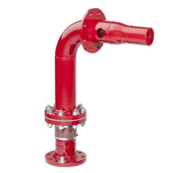 The Hollow Point from WILLIAMS FIRE & HAZARD CONTROL is an air aspirating foam discharging device designed to protect against a fully involved surface fire for cone roof or fixed roof storage tanks. The Hollow Point is to be installed in the shell of a closed roof flammable liquid storage tank and can be used to replace existing foam chambers. It discharges foam solution piped from outside the hazard area, either connected to a fixed system or supplied in a semi-fixed scenario by portable fire apparatus.